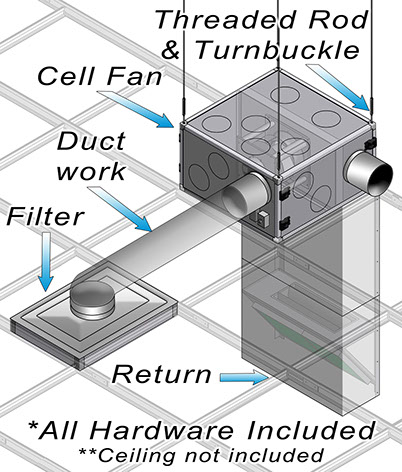 SBB’s Cell Fan Kit is your complete turn-key solution for creating an ISO 6, 7 and 8 cleanroom. Available in 1,500, 3,000 or 5,000 CFM configurations, it provides a quiet and simple solution with one system to hang and wire.